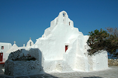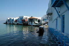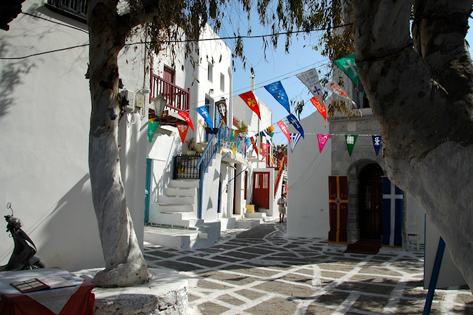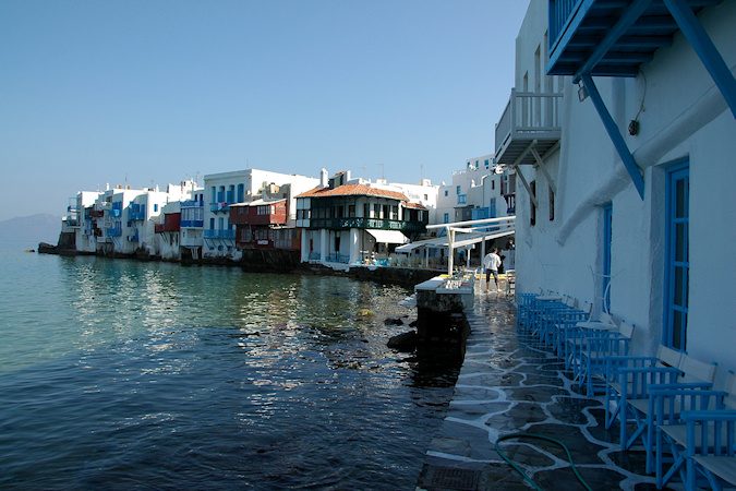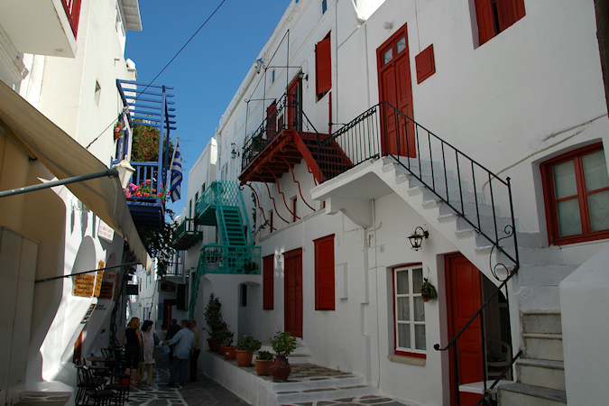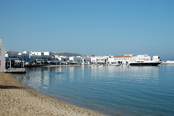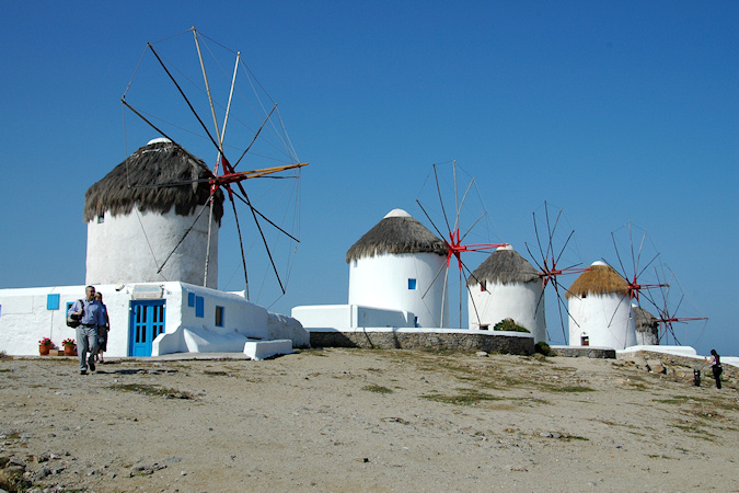 Kuudes vierailukohde ja viimeinen Kreikan saarista oli Mykonos. Mykonosta pidetään nykyään erityisen muodikkaana loma- ja illanviettopaikkana, joka on viime vuosina kasvanut hyvin voimakkaasti ja saari vaikuttikin olevan täynnä keskeneräisiä tai uusia rakennuksia, jotka olivat vielä tähän aikaa vuotta tyhjinä, vuokrattavana tai myytävänä. Mykonoksella laiva oli muita kohteita pidempään, joten Mykynoksen kaupunkiin olisi ollut mahdollisuus käydä tutustumassa myös ilta-aikaan. Retkenä täällä oli lyhyt kierros saarella. Jos antiikin nähtävyydet olisivat kiinnostaneet, olisi voinut täällä tehdä retken veneellä läheiselle Delosin saarelle. Mykonoksen kaupunki Mykonoksen saaren muita nähtävyyksiä
