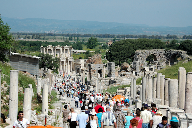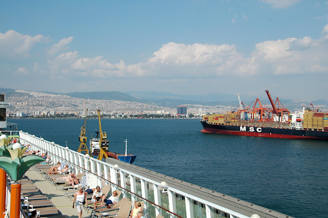 Seitsemäs vierailukohde oli Izmir Turkissa, joka on maan kolmanneksi suurin 2,5 miljoonan asukkaan kaupunki. Izmirissä retken kohteena oli antiikin satamakaupunki Ephesus, joka sijaitsi noin tunnin ajomatkan päässä. Ephesuksessa on aikoinaan sijainnut yksi antiikin seitsemästä ihmeestä Artemiin temppeli. Tästä temppelistä ei kuitenkaan ole juuri mitään jäljellä tai nähtävissä, joten siellä käyminen ei kuulunut retken ohjelmaan. Ephesuksen sanotaan kuitenkin olevan parhaiten säilynyt antiikin kaupunki itäisellä Välimerellä ja kyllähän siellä erilaisia raunioita oli runsaasti, joista erityisen näyttävä oli suurimmaksi osaksi alkuperäisistä kivistä uudelleen rakennettu Celsuksen kirjaston julkisivu. Ephesus Izmir