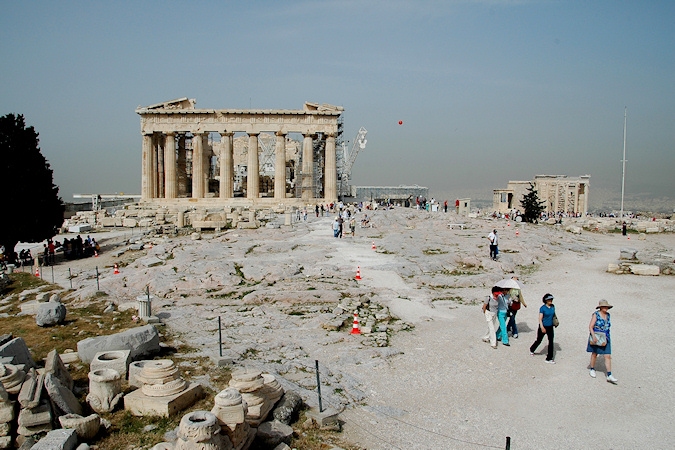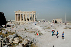 Suoran iltalennon ja yöpymisen jälkeen ennen risteilyä oli Ateenassa yksi kokonainen päivä aikaa tutustua kaupungin nähtävyyksiin. Kaupungin historialliset nähtävyydet keskittyvät varsin pienelle alueelle Akropolis kukkulan lähistölle. Akropolis kukkulalta voisi olla hyvät näkymät ympäröivään kaupunkiin, mutta nyt kaupunki tuntui olevan ilmansaasteiden peitossa. Risteilyn lähtöpäivän aamuna tuli käytyä katsomassa Arkeologinen museo ennen matkaa viereiseen satamakaupunki Piraeuseen, mistä laiva lähti risteilylle. Akropolis Muita nähtävyyksiä