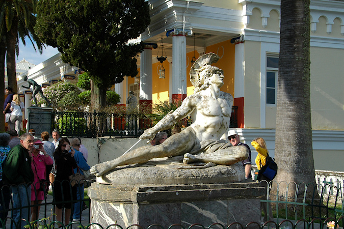 Toinen vierailukohde oli Korfun saari. Korfu on Kreikan pohjoisin ja toiseksi suurin saari aivan Albanian vieressä. Korfulla retkellä pienen saari kierroksen lisäksi pääkohteena oli Akilleen palatsi ja sen puutarha. Komea Akilleen palatsi on Itävalta-Unkarin keisarinna Sissin 1800-luvun lopussa rakennuttama. Retken jälkeen oli hieman aikaa tutustua Korfun vanhaan kaupunkiin. Akilleen palatsi Korfun kaupunki