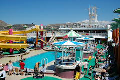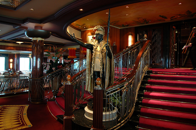 Laiva ulkoa Laiva sisältä Laivan muutostyöt eivät olleet vaikuttaneet laivan sisustukseen, joten se oli laivan alkuperäisen Havaiji teeman mukainen. Tällä laivalla ei oikeastaan ole yhtä selkeää vastaavaa keskipistettä kuin aikaisemmilla laivoilla, pääaula Aloha Atrium on vain kahden kerroksen korkuinen. Suurin tila on Stardust teatteri, joka tuli tutuksi etenkin retkille lähtöä odotellessa, joskus varsin pitkäänkin. Itse viihdeohjelman taso teatterissa oli aikaisempiin verrattuna ehkä jonkun verran vaatimattomampi. Laivan uuden kasinon palveluita ei tullut käytettyä lainkaan, koska tällä laivalla pelaamisesta varten olisi tarvinnut sitä varten rekisteröityminen, eikä kolikoille ollut käyttöä lainkaan. Julkisia tiloja Ravintoloita Laivan suurimmatkin ruokasalit olivat varsin pieniä ja sokkeloisia. Toisaalta laivayhtiön palvelukonseptin mukaisesti ruokapaikoissa on reilusti erilaista valinnanvaraa, joten niitä oli lukumääräisesti runsaasti, yhteensä kymmenen kappaletta. Osa ravintoloita oli lisämaksullisia, mutta 10USD maksu ei etenkään kokonaisuuden kannalta ollut kovin suuri. Baareja Hytti ( 10079 Cat JJ ) Hytti oli normaali kahden hengen sisähytti varsin hyvällä paikalla keskellä laivaa. Hytti oli erinomaisessa kunnossa, muuten kyllä varsin pieni, mutta hyvin siellä mahtui nukkumaan.