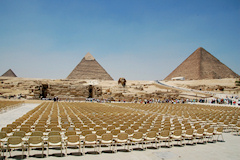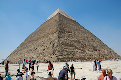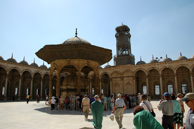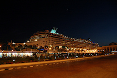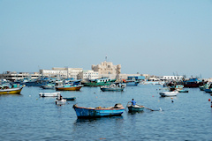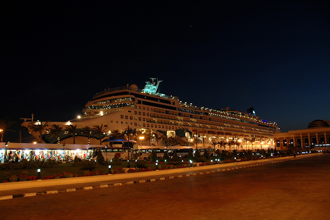 Kolmas vierailukohde oli retken pääkohde Aleksandria Egyptissä. Aleksandria on Egyptin toiseksi suurin 3,5 miljoonan asukkaan kaupunki ja välimeren suurin satama. Aleksandrissa laiva oli kaksi päivää. Ensimmäisenä päivänä ohjelmassa oli retki sisämaahan noin 150km päähän Kairoon ja toisena päivänä tutustuttiin Aleksandrian nähtävyyksiin. Ensimmäisenä päivänä parin tunnin bussimatkan jälkeen oltiin suurkaupunki Kairossa, jossa ensimmäisenä nähtävyytenä olivat pyramidit ja sfinksi. Nämä kohteet olivat etenkin kauempaa jollain tapaa odotuksia pienempiä, toki aivan pyramidin juurella niiden suuren koon kyllä huomasi. Näissä kohteissa minusta oli aivan liian vähän aikaa, eikä näitä nähtävyyksiä ehtinyt juuri eri suunnista käydä katselemassa. Pyramidien jälkeen ohjelmassa oli lyhyt risteily Niilillä, jossa oli ruokailu ja jonka jälkeen tanssierityksiä. Risteilyn jälkeen käytiin katsomassa komeaa Muhammed Alin moskeijaa. Lopuksi ennen paluuta Aleksandriaan käytiin katsomassa papyrusten valmistusta. Toisena päivänä Aleksandriassa aluksi käytiin Montazan puistossa ja palatsin ulkopuolella. Puistoon ja sieltä takaisin, sekä enimmäkseen myös muiden kohteiden välit, kuljettiin komeaa, leveää ja pitkää rantakatua pitkin. Seuraavana kohteena oli Qait Bayn linnoitus, jonka paikalla on aikoinaan sijainnut Faroksen majakka, joka oli yksi antiikin maailman seitsemästä ihmeestä. Retkeen kuului käynti museossa joten kaupungin historia, hieroglyfit ja muumio eivät jääneet näkemättä. Viimeisenä kohteena retkellä oli Kom El-Shuqafan katakombit. Pyramidit ja sfinksi Niilin risteily Muhammed Alin moskeija Aleksandria